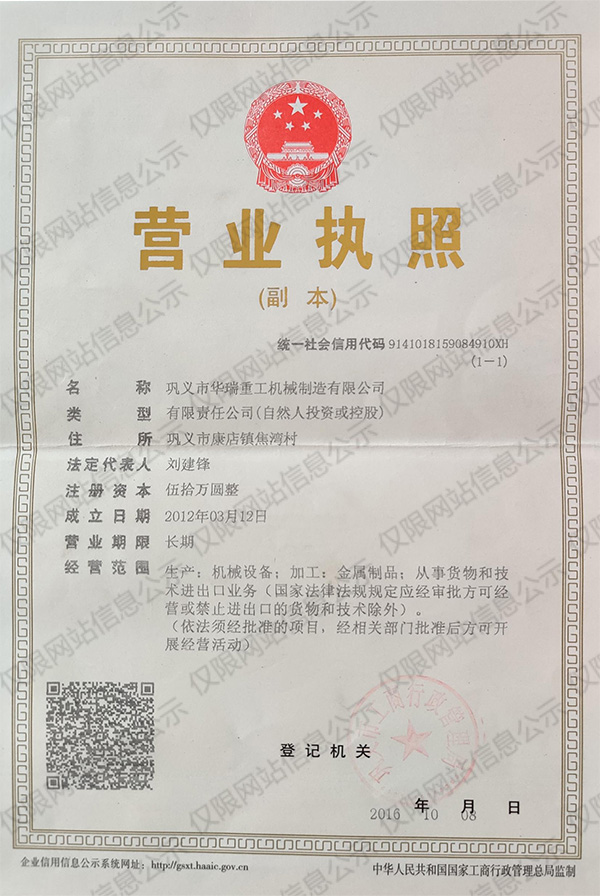 鞏義市華瑞重工機(jī)械制造有限公司 版權(quán)所有 2010